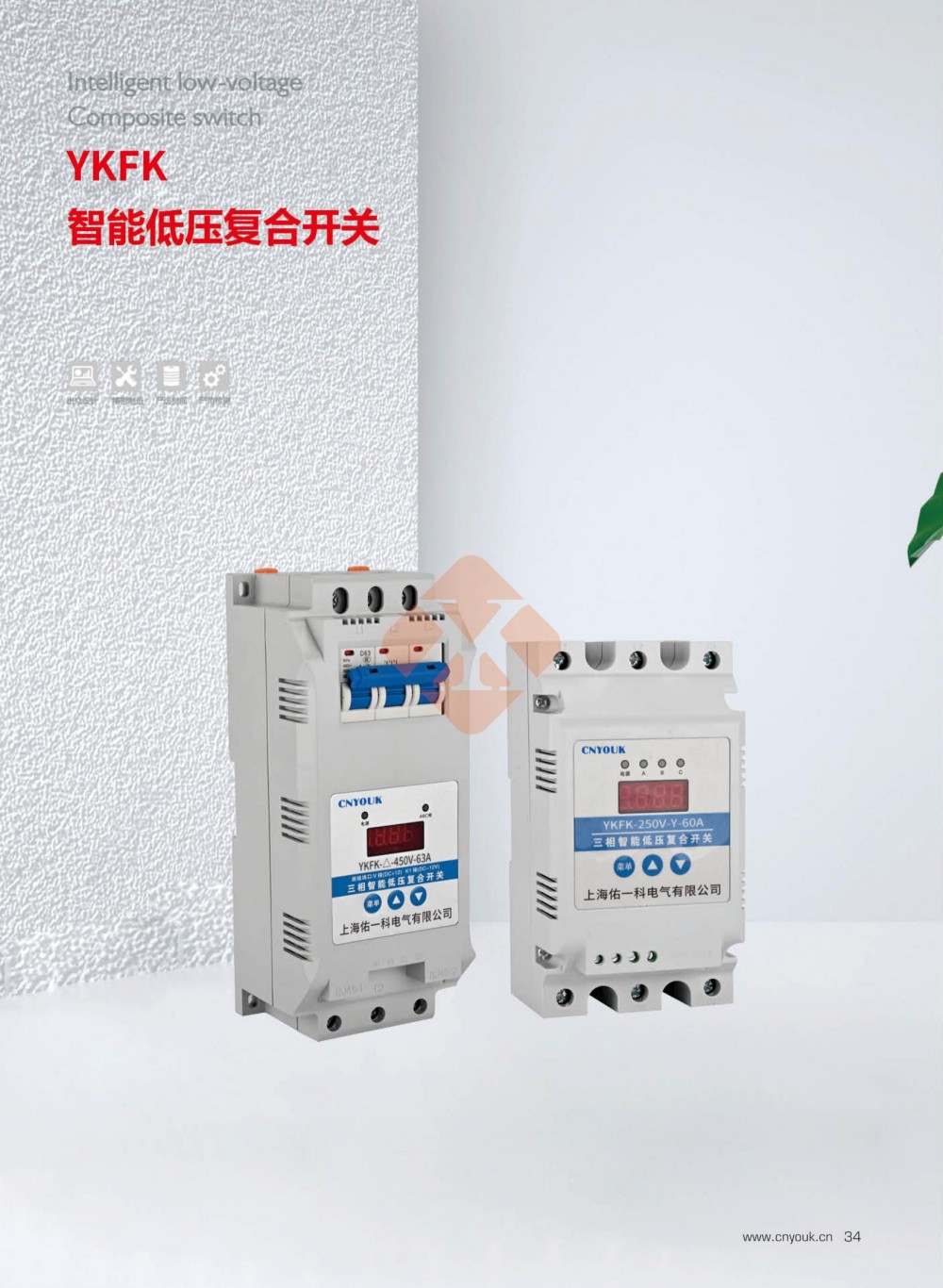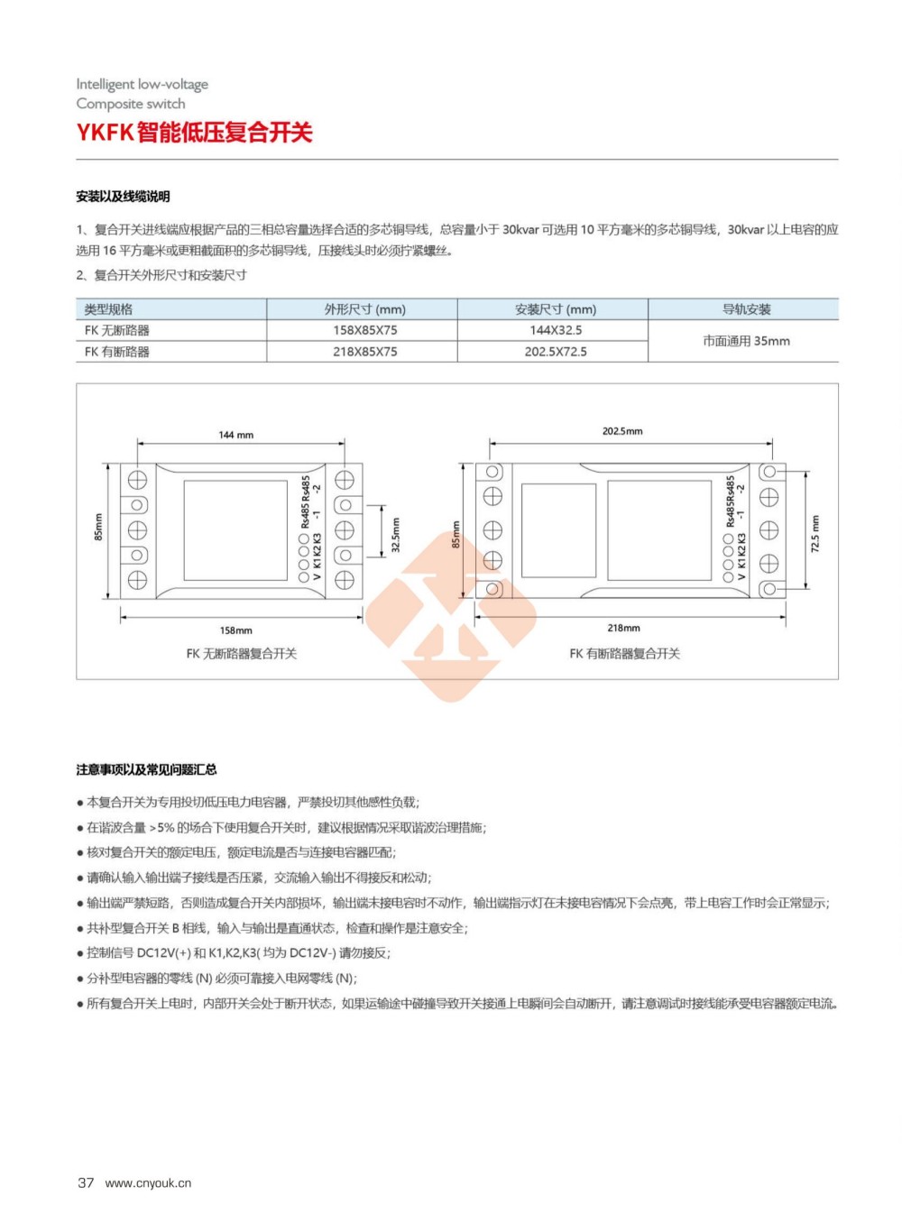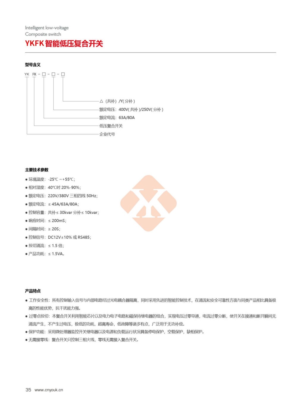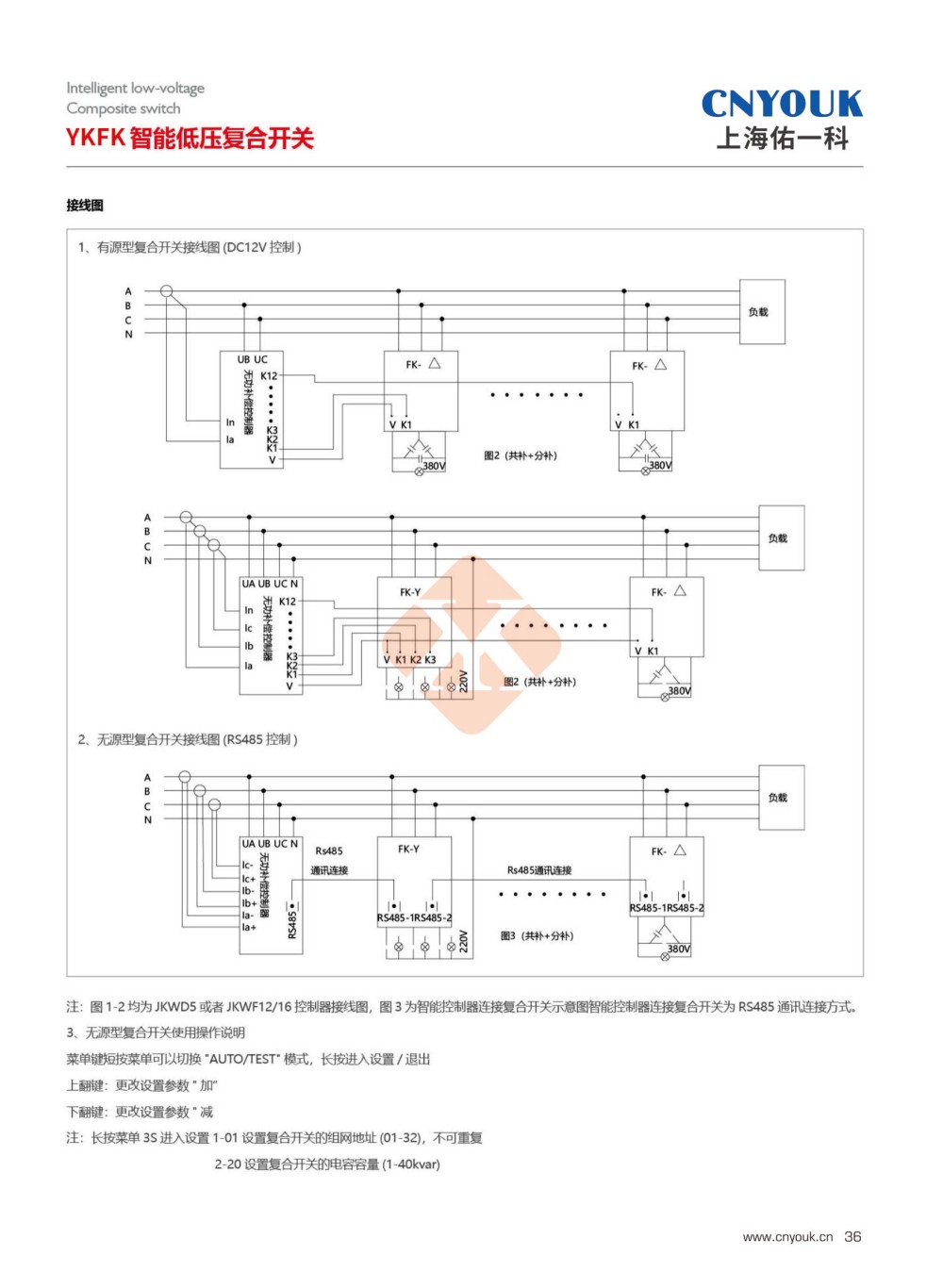 YKFK复合开关是由三个独立的复合开关组成的,适用于低压无功补偿电容组的通断控制。复合开关的基本工作原理是将可控硅于磁保持继电器并接。使复合开关在接通和断开的瞬间具有可控硅过零投切得优点,而在正常接通期间又具有接触器开关无功耗的优点。