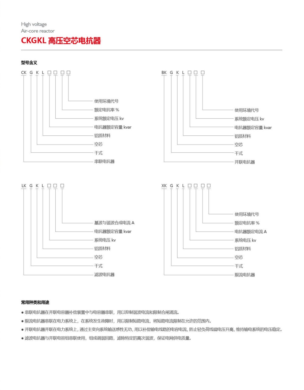 空心电抗器系列产品,产品电压范围从0-35KV,容量从0-3500KVAR,常用于无功补偿、滤除谐波、限流等场合,空心电抗器采用多层绕制并联的筒形结构。和包封间采用引拨条隔开形成通风气道,散热性好,同时采用小截面圆导线多股平等绕制,涡流损耗和漏磁损耗小,在绝缘方面我们采用每根导线表面采用聚脂薄膜多层半叠包,具有很高的绝缘强度,绕组用浸渍环氧绝缘胶的玻璃纤维严密绕包,经高温固化形成-个钢性体,其机械强度高,能耐受短路电流的冲击而不损坏,线圈表面有抗臭氧紫外线防护层,抗老化,耐各种恶劣气候。空心电抗器主要分为串联电抗器;滤波电抗器;限流电抗器;并联电抗器几个系列。