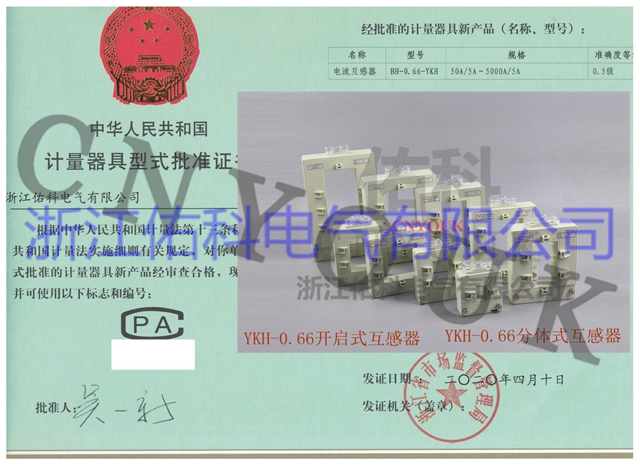开口式互感器 CPA型式批准证书 YKH互感器